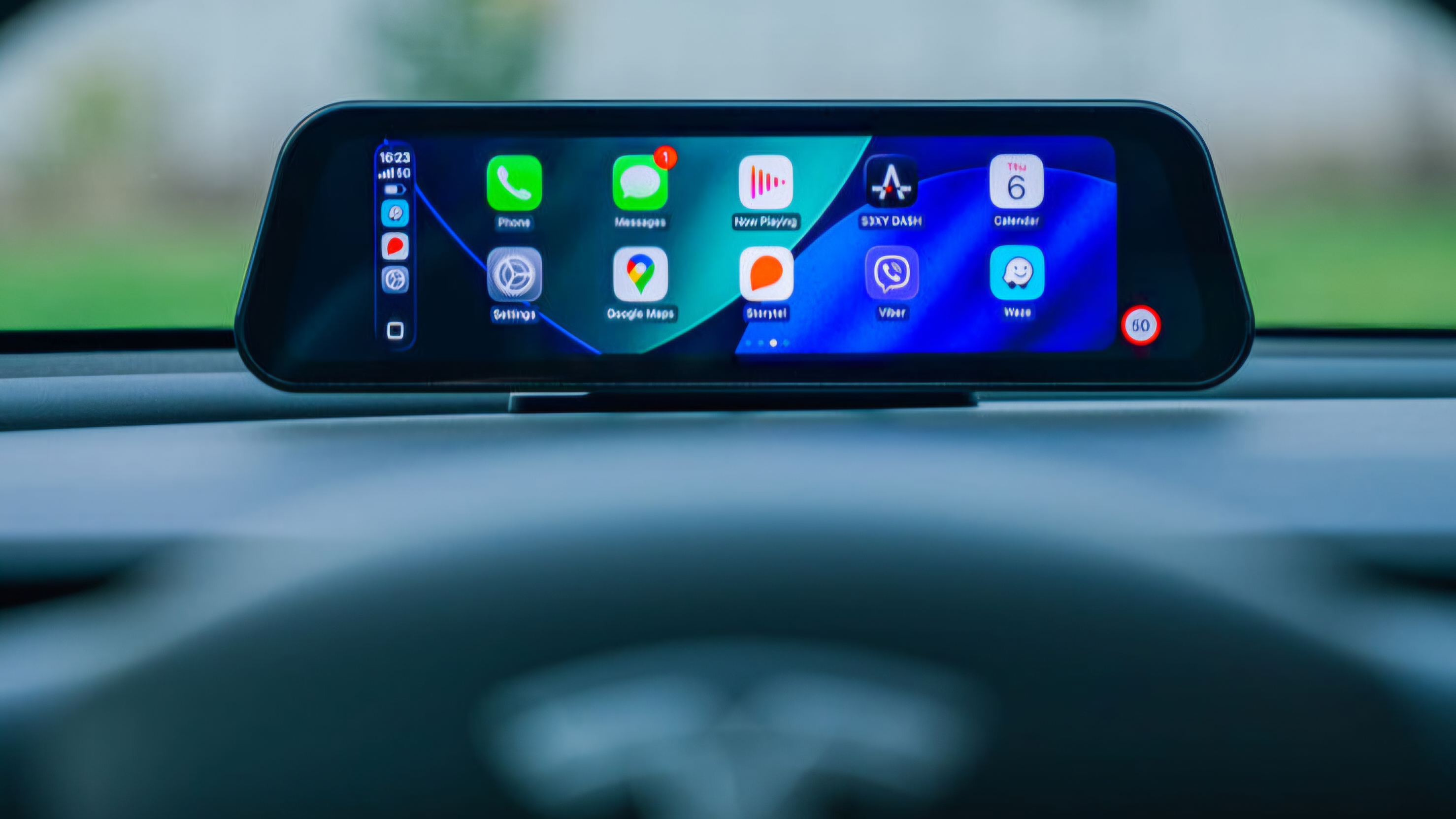 Sie haben zwei Möglichkeiten, das Gerät aufzustellen und zu positionieren. Die wichtigste Möglichkeit besteht darin, den Bildschirm am unteren Rand Ihrer Windschutzscheibe zu platzieren, sodass Sie Informationen wie auf einem Heads-up-Display sehen können, ohne den Blick von der Straße abzuwenden. Wenn Sie einen klassischeren Look bevorzugen, ist eine magnetische Halterung im Lieferumfang enthalten, mit der Sie den Bildschirm hinter Ihrem Lenkrad befestigen können. Das Unternehmen weist jedoch darauf hin, dass diese Position möglicherweise einen Teil der Luftzufuhr zu Ihrem Lüftungsschlitz blockiert. Das Gerät verbindet sich über Bluetooth mit Ihrem Auto über ein kleines Modul, das in den OBD-Anschluss gesteckt wird, und die meisten Leute sollten es selbst installieren können.