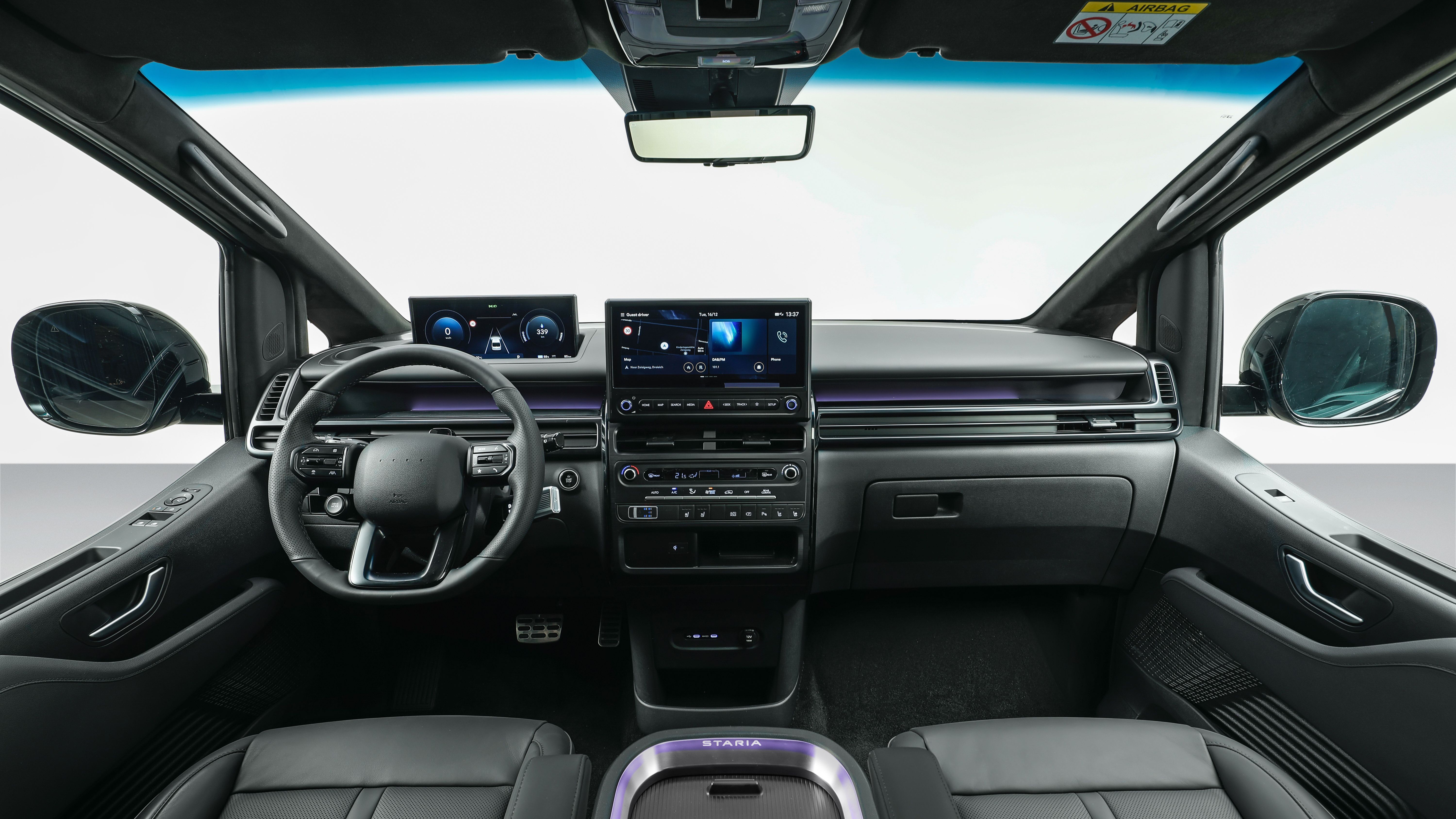 Ab diesem Zeitpunkt werden die Details weniger klar. Der Staria Electric nutzt einen Elektromotor, um die Vorderräder anzutreiben. Dieser Motor leistet 160 kW, was etwa 218 PS entspricht.