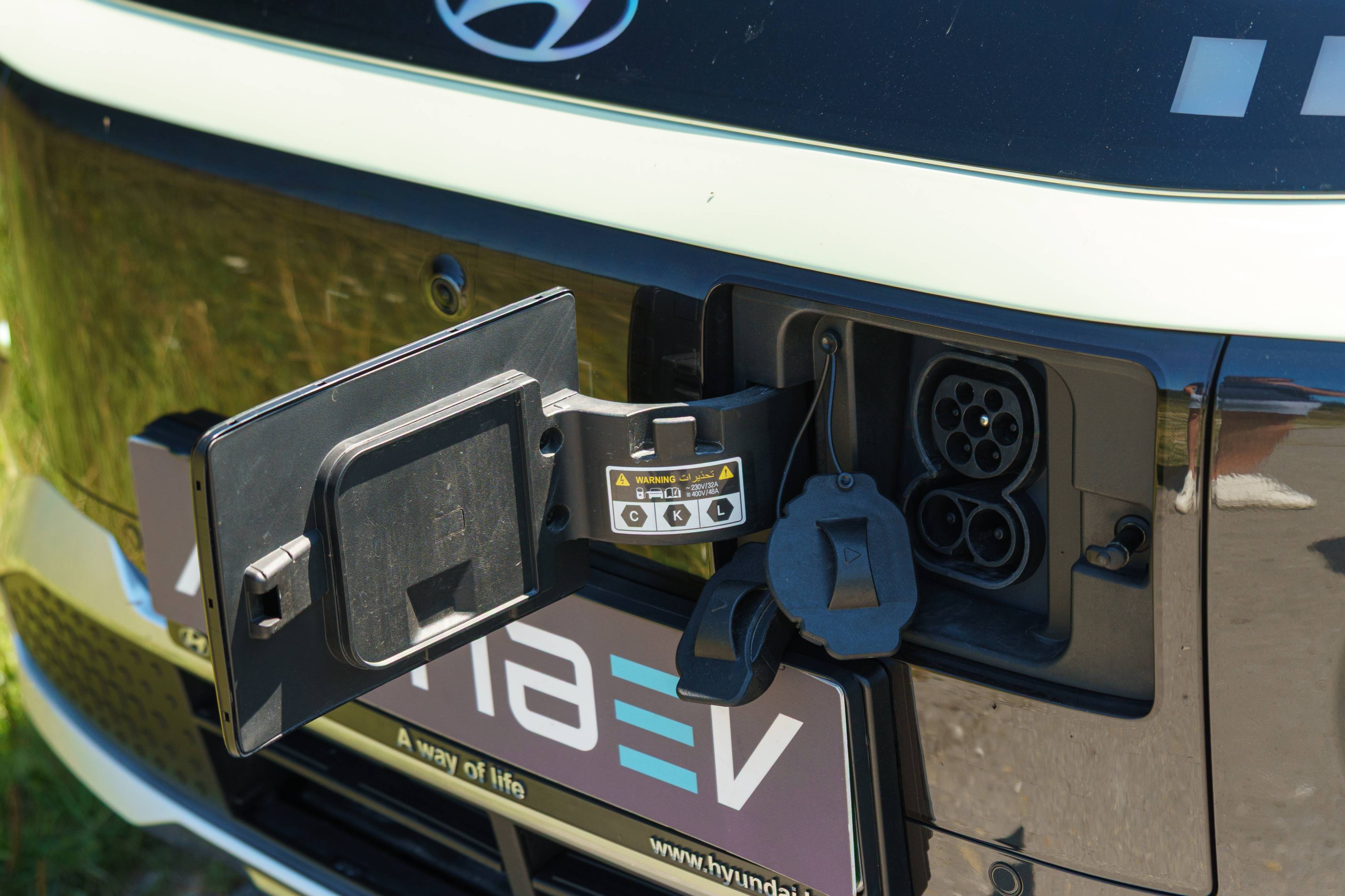 Der Ladeanschluss, der aus der vorderen Stoßstange hervorsteht, unterbricht das reibungslose Design des Autos. Diese Platzierung ist zwar für die meisten Lade -Setups bequem und macht es besonders anfällig für Schäden durch Beulen und Kratzer, was möglicherweise Probleme in der Straße verursacht.