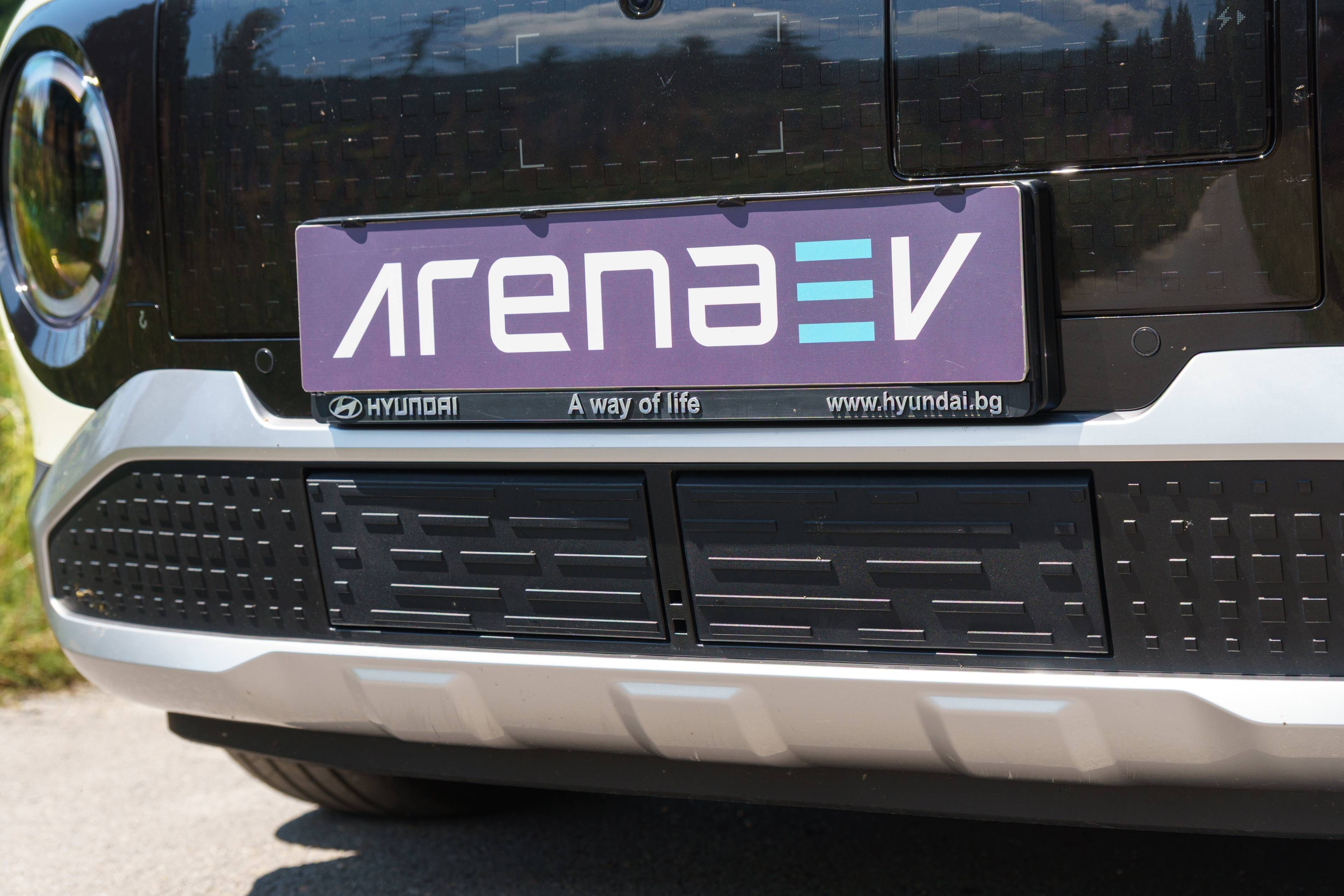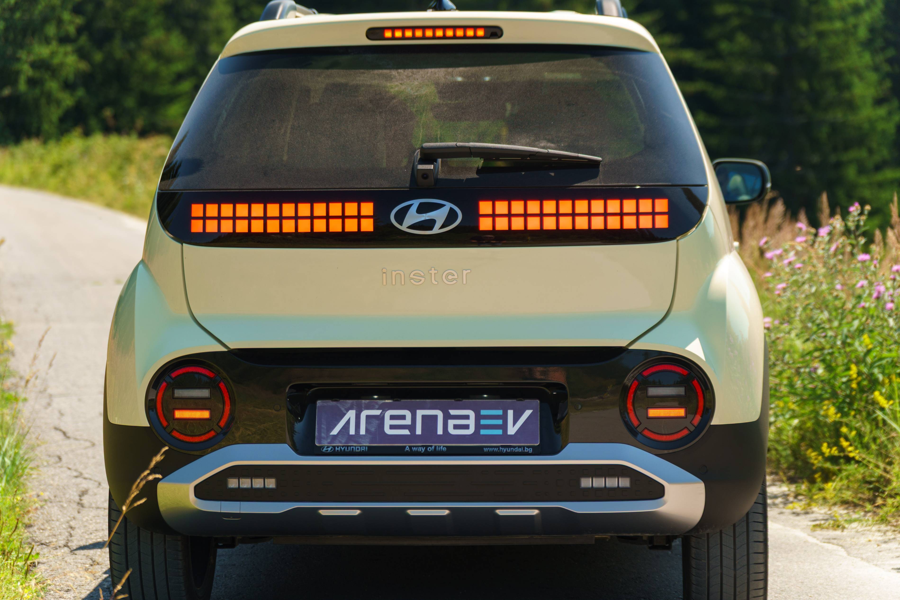 Das große Hyundai -Logo und das digitale Display auf der Rückseite zeigen deutlich die Marke des Autos und vervollständigen das hintere Design gut. Es ist ein ansprechendes Fahrzeug, und obwohl seine Form etwas ungewöhnlich ist, erhöht dies tatsächlich zu seinem Charakter und lässt es hervorstechen.