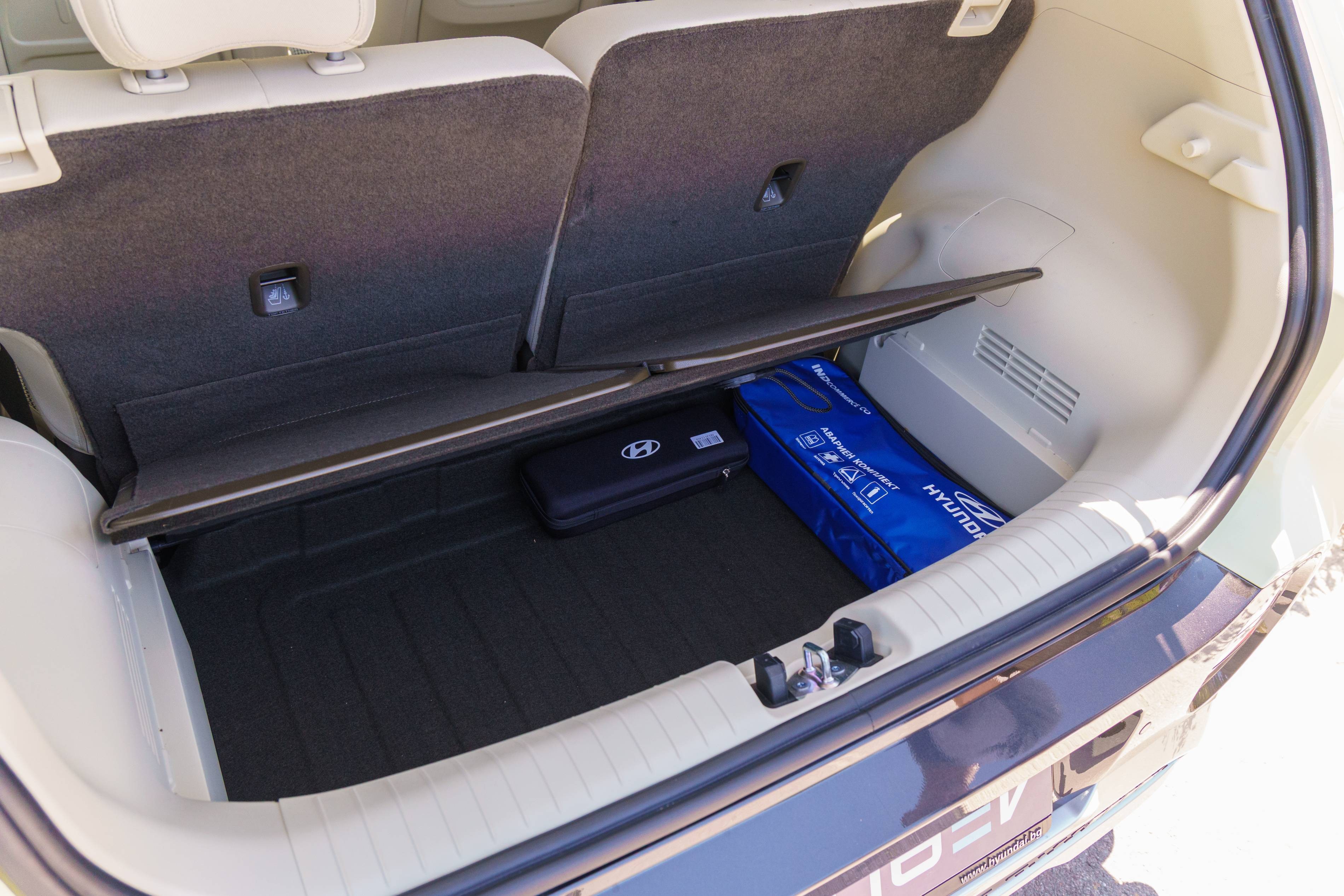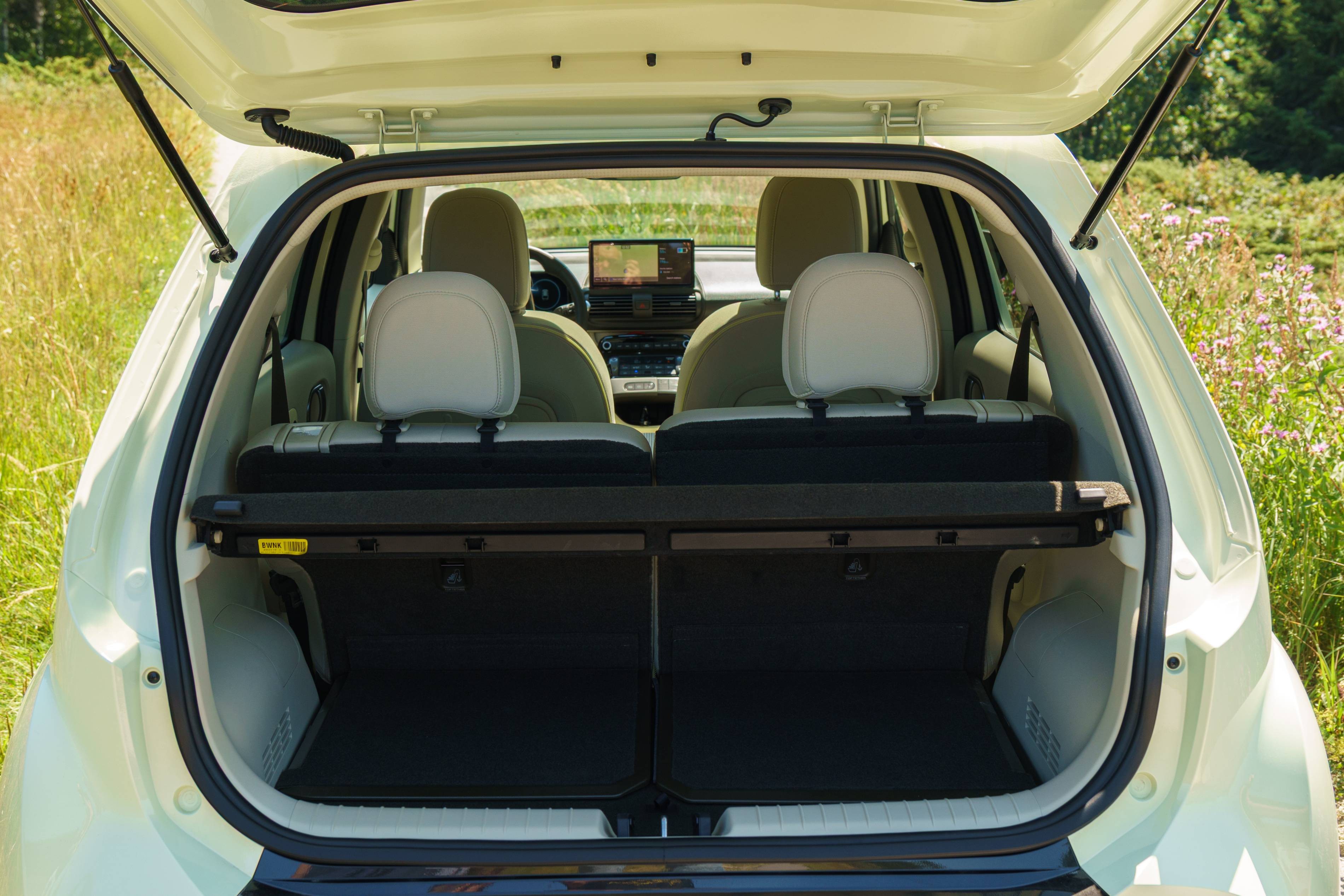 Der Inster bietet begrenzte Laderaum – nur 8,4 Kubikfuß -, wenn die Rücksitze vollständig vorwärts sind. Die abgewinkelten Rücksitze machen es auch schwierig, den verfügbaren Platz effizient zu nutzen. Ein großes Lagerfach im Erdgeschoss trägt jedoch dazu bei, diese begrenzte Kapazität auszugleichen.