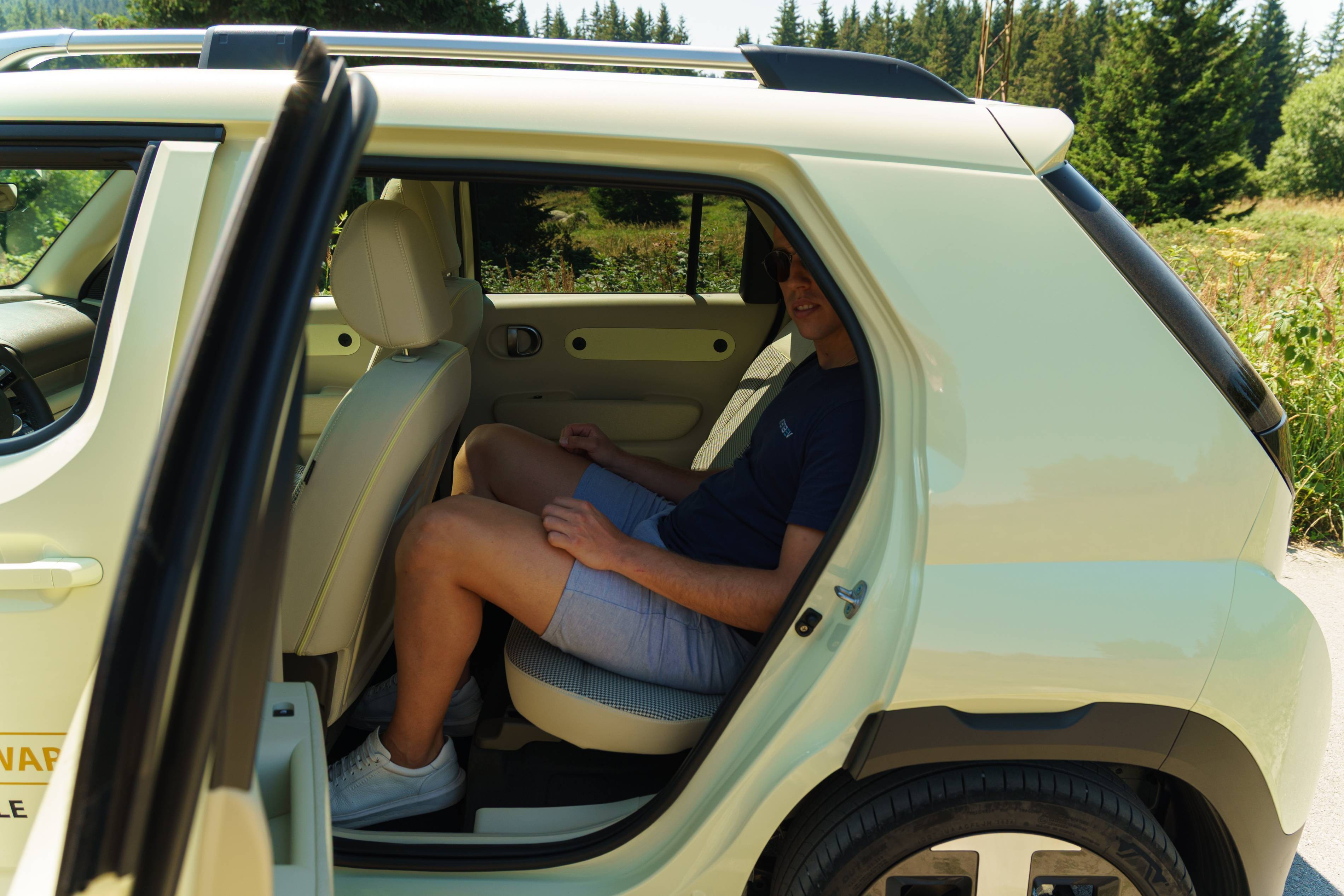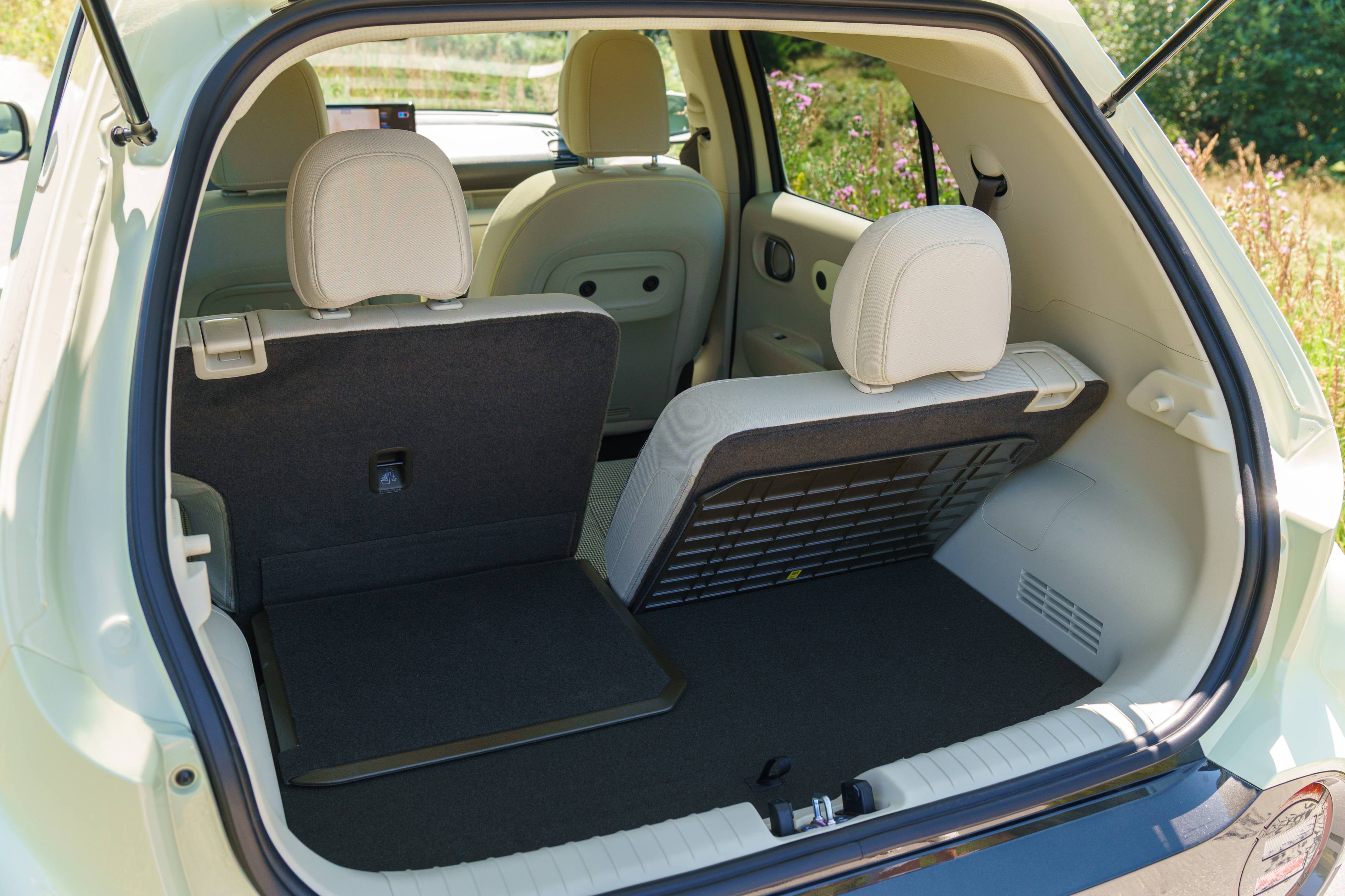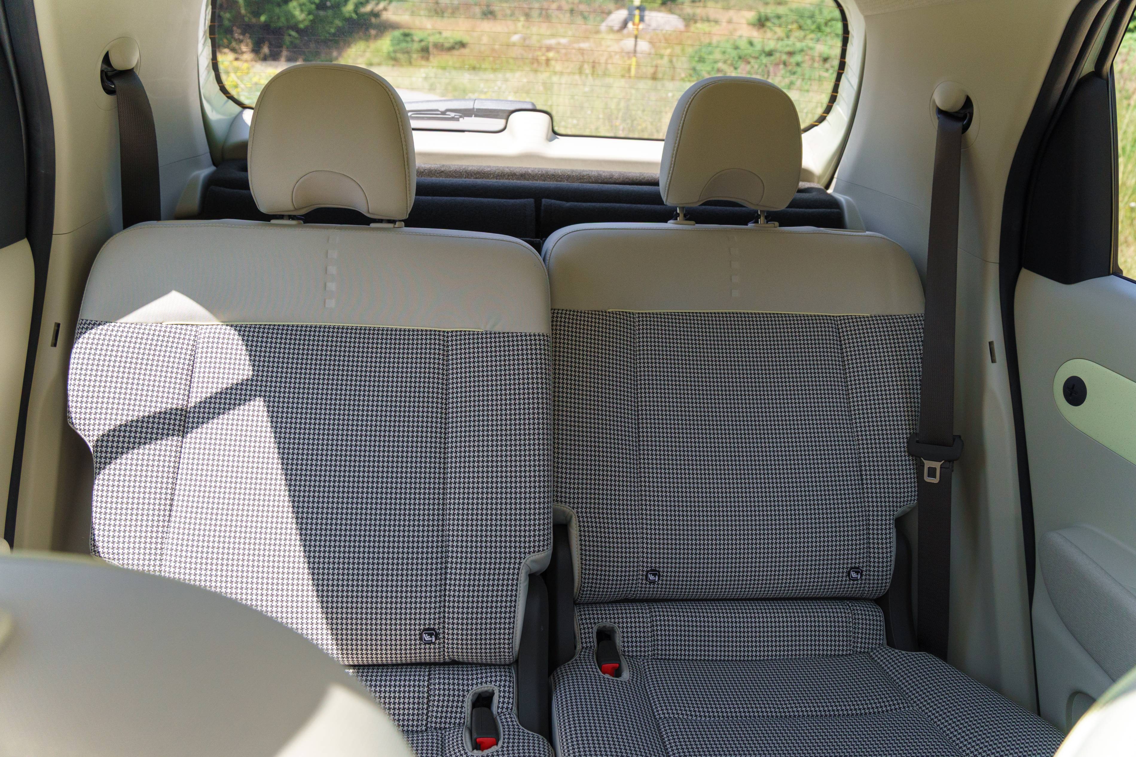 Die meisten kleinen Autos haben enge Rücksitze, die kaum bequem zwei oder drei Personen passen. Der Hyundai -Inster ist anders – seine Rücksitze sind eine herausragende Funktion. Sie rutschen nach vorne und rückwärts, und die Rückenlehne lehnen sich zurück und bieten eine überraschende Menge an Platz. Dadurch können die Passagiere bequem fahren und die Menge an Platz für Gepäck bei Bedarf einfach einstellen.