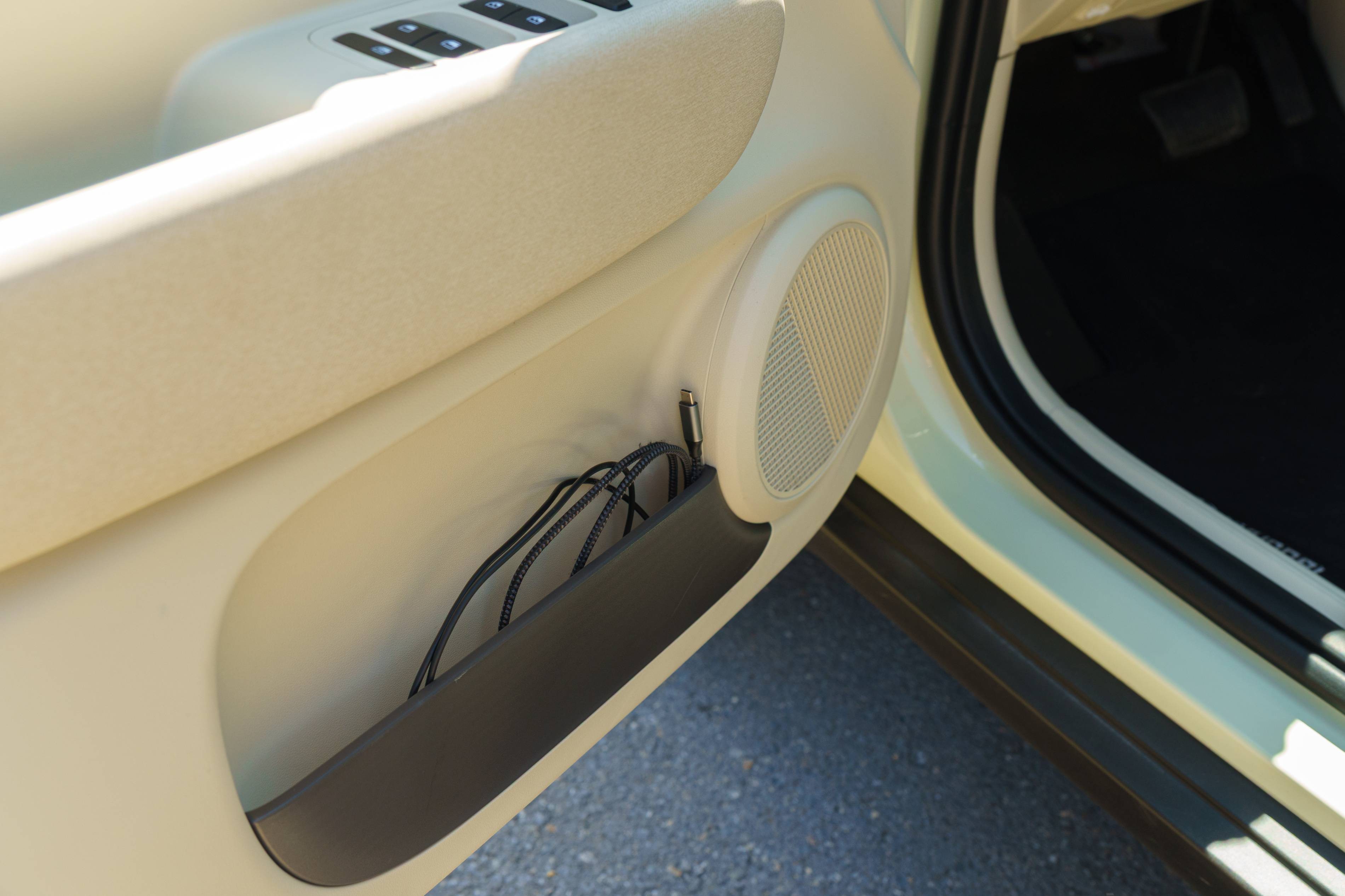 Sie werden ungewöhnlich große Philips-Head-Schrauben an den Türrahmen bemerken. Obwohl sie nicht gut aussehen, sind sie da, so dass Hyundai später leicht praktische Accessoires hinzufügen kann. Ohne diese Zubehör sind die Türtaschen ziemlich klein.