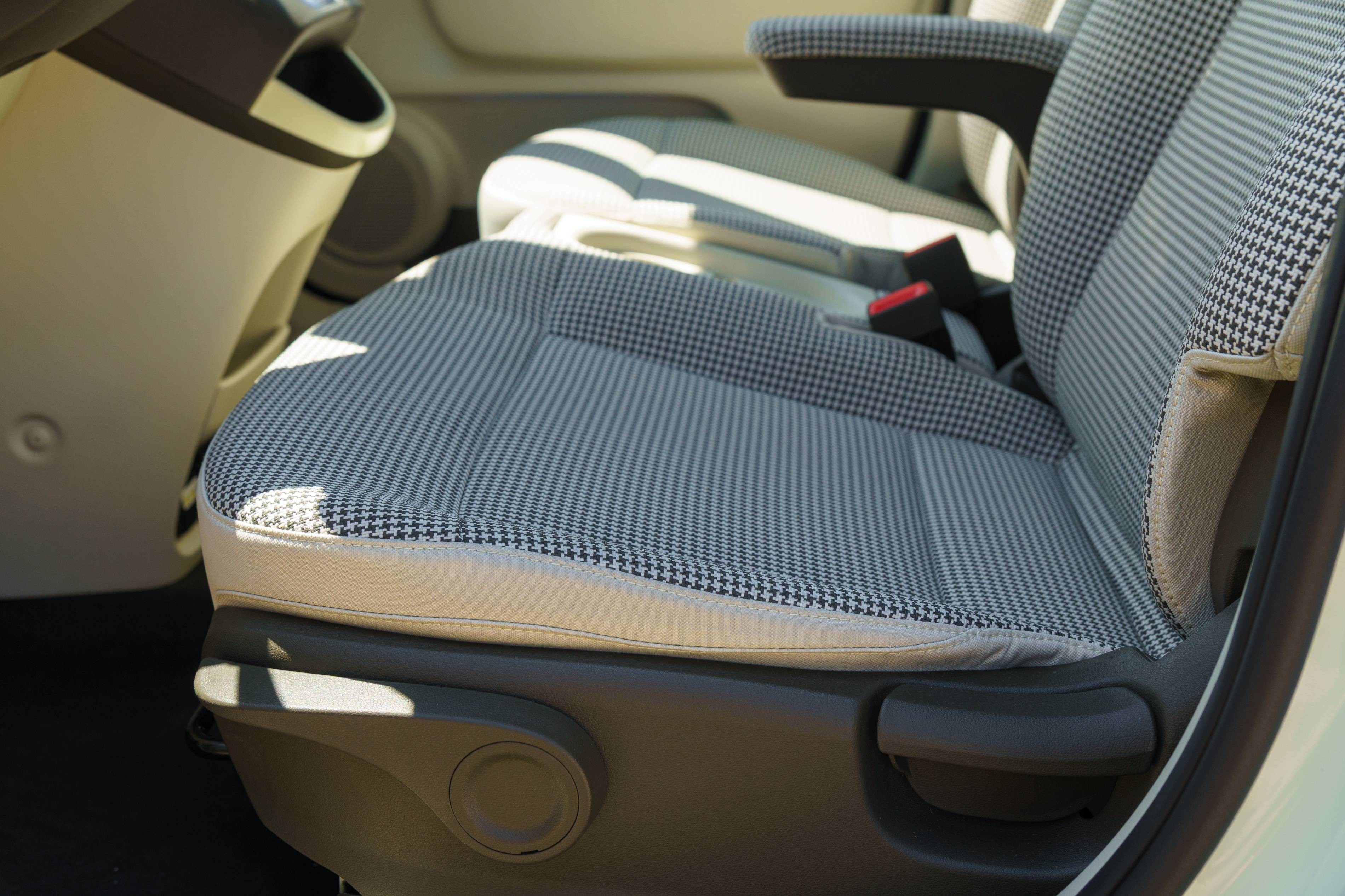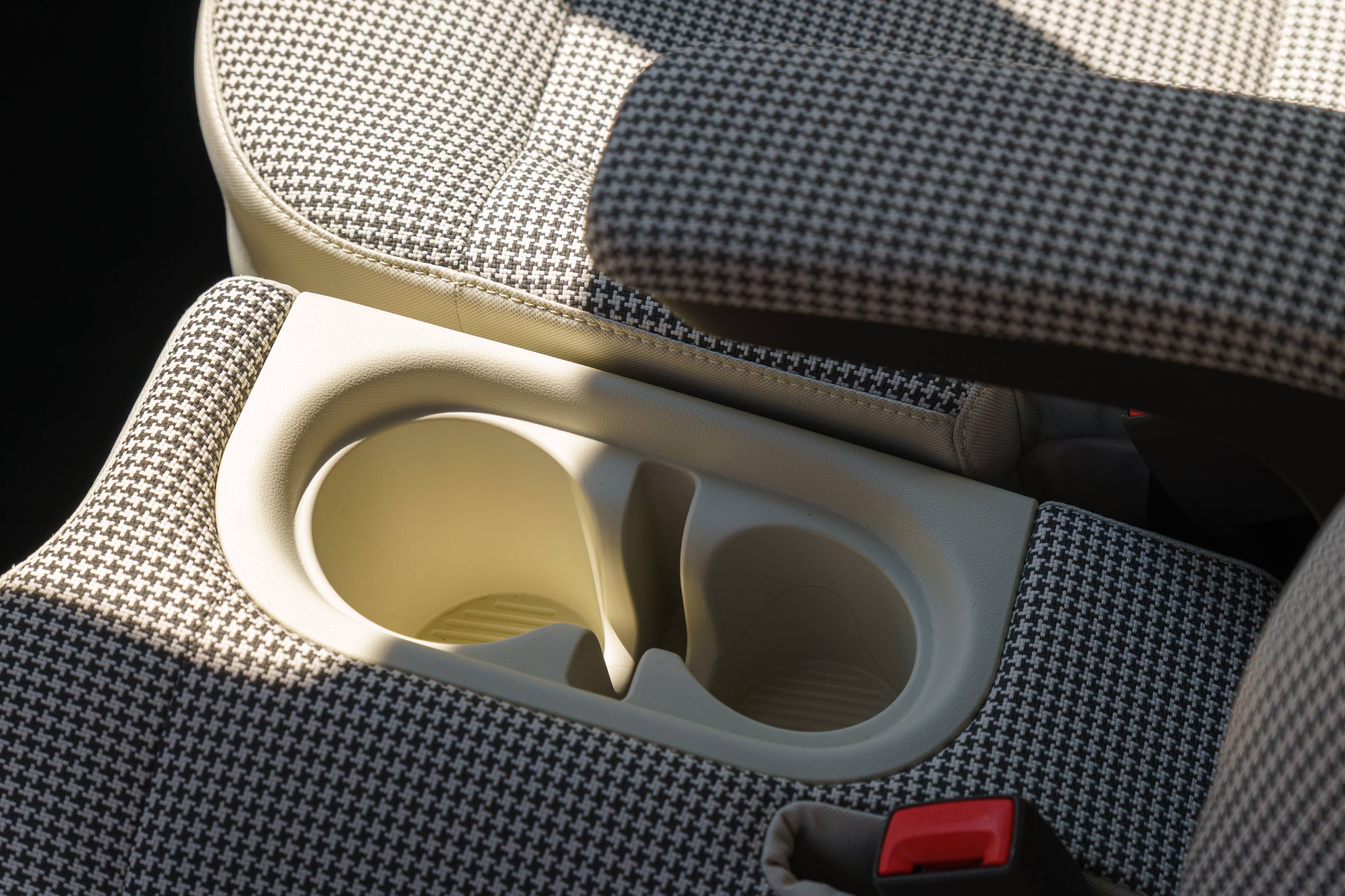 Überraschenderweise haben die Vordersitze keinen soliden Teiler – nur eine kleine, abnehmbare Armlehne. Aufgrund der eingebauten Cupeholder ist es kein traditioneller Banksitz, aber es ist immer noch bequem genug, sich auszudehnen und zu entspannen oder sich sogar mit jemandem zu kuscheln.