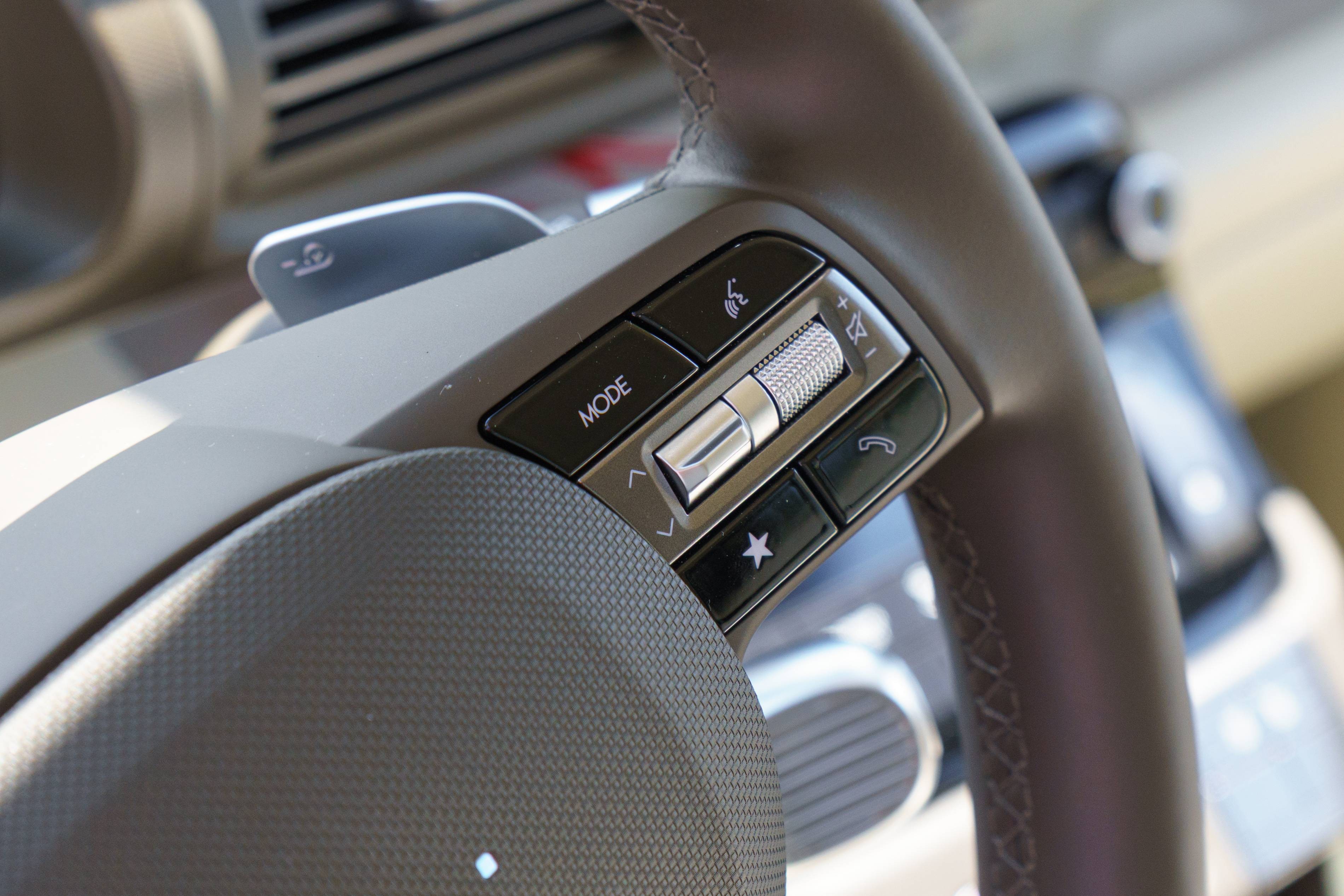 Das Lenkrad ist kreisförmig und verfügt über zahlreiche Knöpfe für die Stereo- und Tempomat. Mit einem Zifferblatt auf der unteren linken Seite können Sie verschiedene Antriebsmodi auswählen-eine Funktion, die normalerweise nur in Hochleistungssportwagen und Supersportwagen zu finden ist, aber in diesem kompakten, 115-PS-Stadtauto überraschend verfügbar ist.