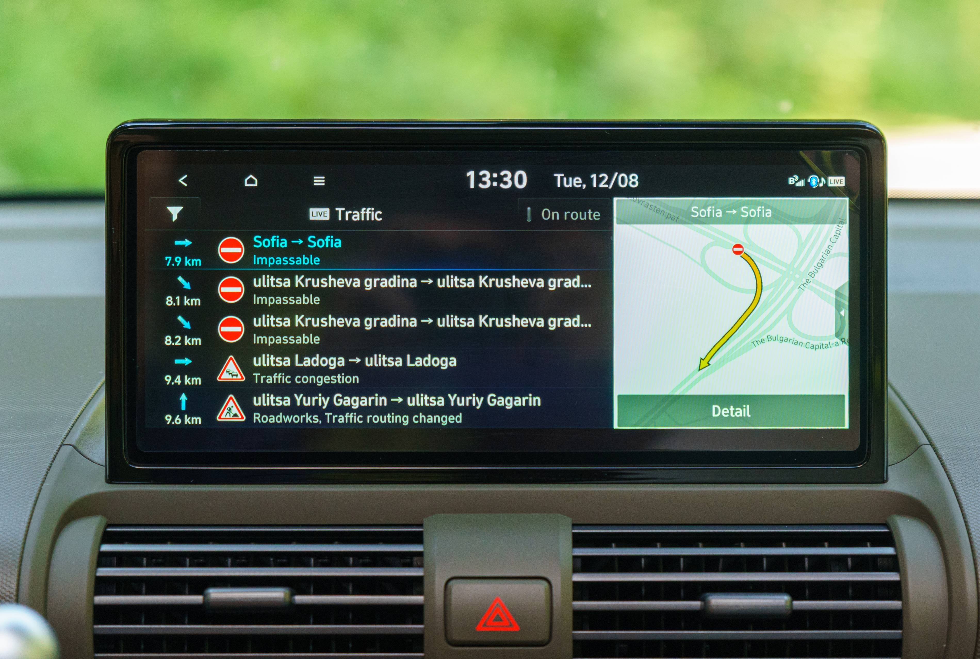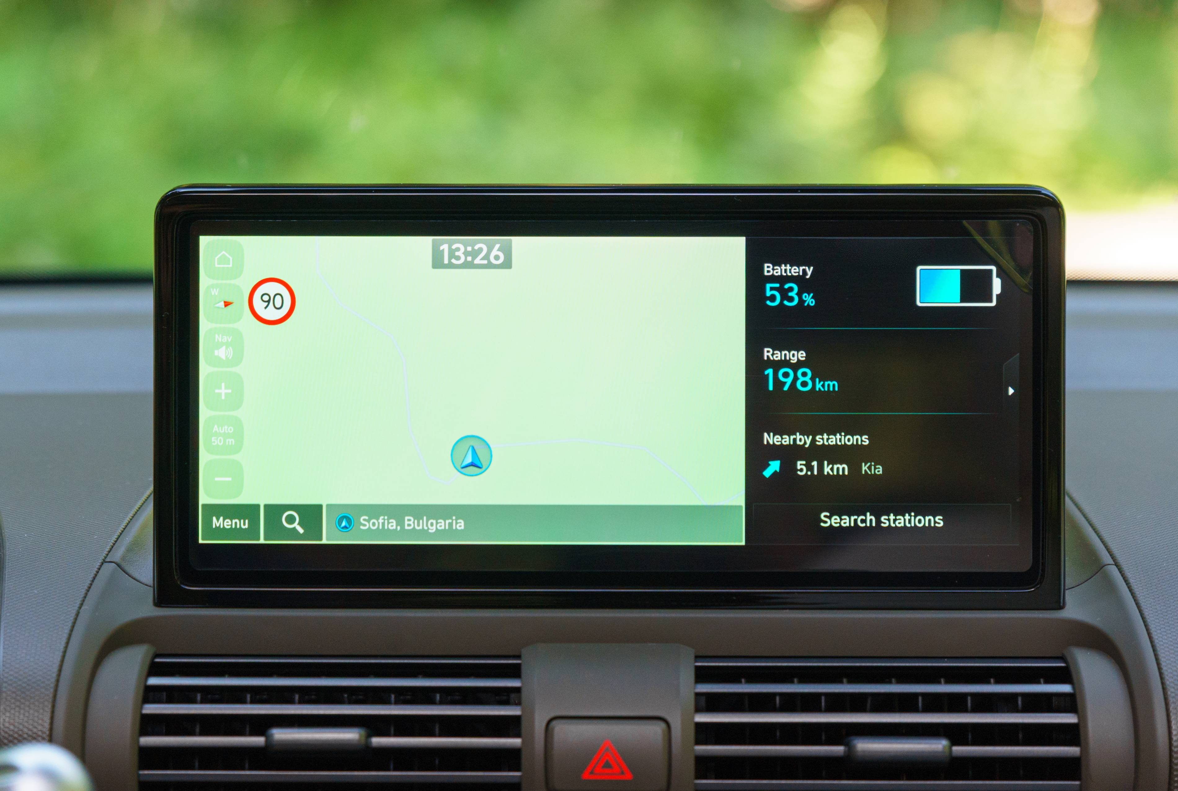 Das Navigationssystem ist einfach zu bedienen und plant Ihre Route, und schlägt sogar Orte vor, die bei Bedarf aufgeladen werden können. Es bietet auch Echtzeit-Verkehrsaktualisierungen wie Unfälle oder Straßenarbeit, wodurch Sie sich von Verzögerungen fernhalten können.