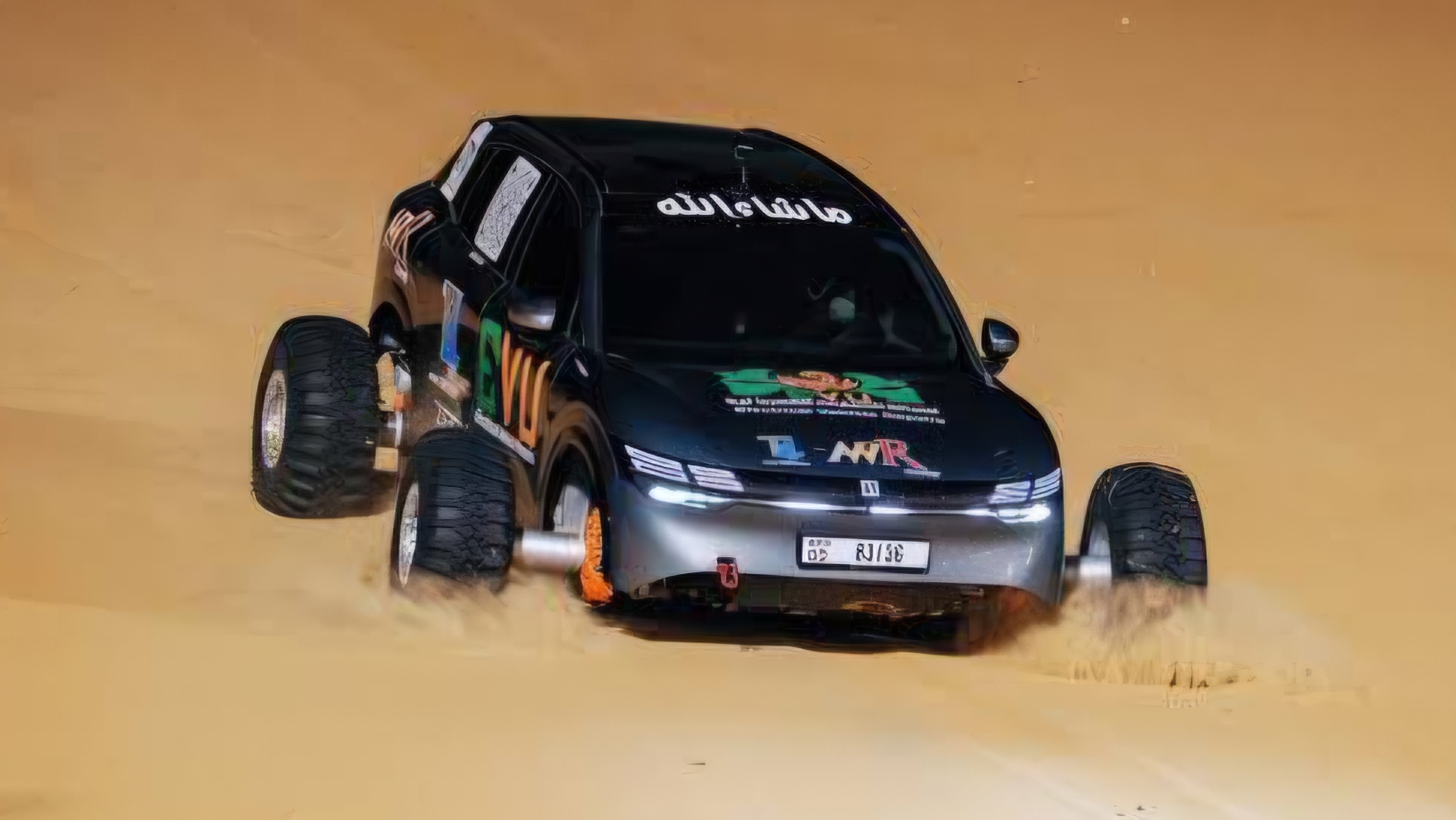 Um das Auto auf den herausfordernden „Hill of Fear“ vorzubereiten, verbesserte das Team der AW Rostamani Group seine Reifen und Federung. Sie verwendeten Offroad-Reifen und ein besseres Federungssystem, um das unwegsame Gelände zu bewältigen. Durch die Verlängerung der Vorder- und Hinterachse wurde auch das Erscheinungsbild des Wagens verbreitert. Wichtig ist, dass das Auto über die gleichen Elektromotoren und die gleiche Batterie verfügt wie das Standardmodell von Zeekr, das Sie kaufen können. Schließlich wurde ein intelligentes „Torque Vectoring“-System implementiert, um die Kraft intelligent auf jedes Rad zu verteilen und so ein Durchdrehen der Räder im Sand zu verhindern.